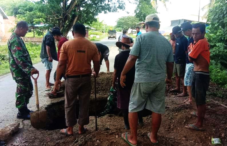 Babinsa Koramil 1431-02/Kabaena dan Masyarakat Kompak Karya Bakti Bersihkan Drainase