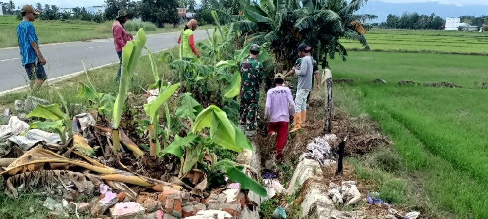 Sebagai upaya Menciptakan Lingkungan yang Asri Personel Koramil 03/Poleang Kerja Bakti Tanam Pohon
