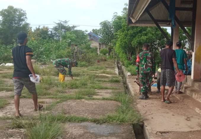 Bombana, SultraNET. | – Babinsa Koramil 1431-01/Rumbia, Serka Wahab, Serda Pandi, dan Serda La Ode Masrun, melaksanakan kerja bakti pembersihan Pasar Rakyat Desa Anugerah, Kecamatan Lantari Jaya, Kabupaten Bombana, Jumat (16/5/2024). Kegiatan ini melibatkan masyarakat setempat dan bertujuan untuk menciptakan lingkungan yang bersih dan sehat.