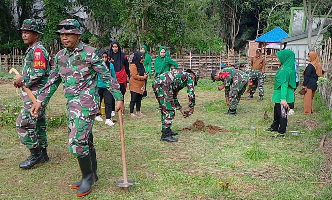 Bombana, SultraNET . | – Di tengah semangat kebersamaan untuk menjaga lingkungan, Koramil 1431-02/Kabaena Kodim 1431/Bombana menggelar sebuah kegiatan karya bakti yang penuh makna. Bertempat di Dusun 3 Desa Lengora, Kecamatan Kabaena Tengah, Kabupaten Bombana, Bati tuud Koramil 1431-02/Kabaena, Peltu Muh Haris bersama anggota Koramil 02 Kabaena melaksanakan penanaman pohon di Kebun PKK dan Kebun milik Desa Lengora. (Jumat, 1/3/2024)
