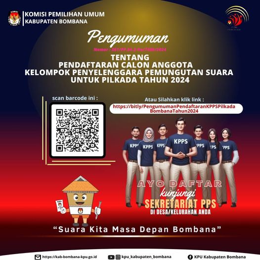 Bombana, Sultranet.com – Komisi Pemilihan Umum (KPU) Kabupaten Bombana mengumumkan pembukaan pendaftaran calon anggota Kelompok Penyelenggara Pemungutan Suara (KPPS) untuk Pemilihan Gubernur dan Wakil Gubernur, Bupati dan Wakil Bupati Tahun 2024.