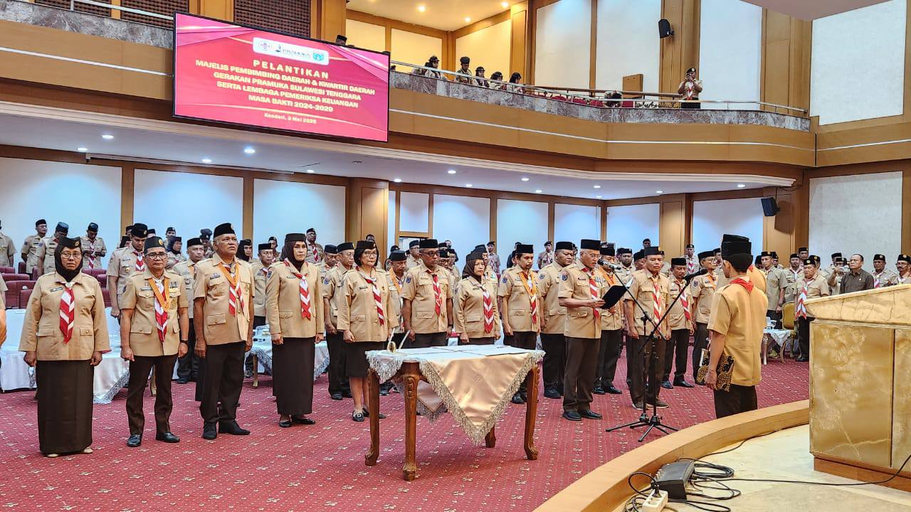 Kendari, Sultranet.com — Gerakan Pramuka Sulawesi Tenggara memasuki babak baru dalam perjalanannya setelah pelantikan Majelis Pembimbing Daerah (Mabida), Kwartir Daerah (Kwarda), serta Lembaga Pemeriksa Keuangan masa bakti 2024–2029. Prosesi pelantikan yang berlangsung di Ruang Pola Kantor Gubernur Sultra ini menjadi momen penting dalam memperkuat peran Pramuka sebagai mitra strategis pemerintah dalam pembentukan karakter generasi muda. Acara ini digelar pada Sabtu, 3 Mei 2025.