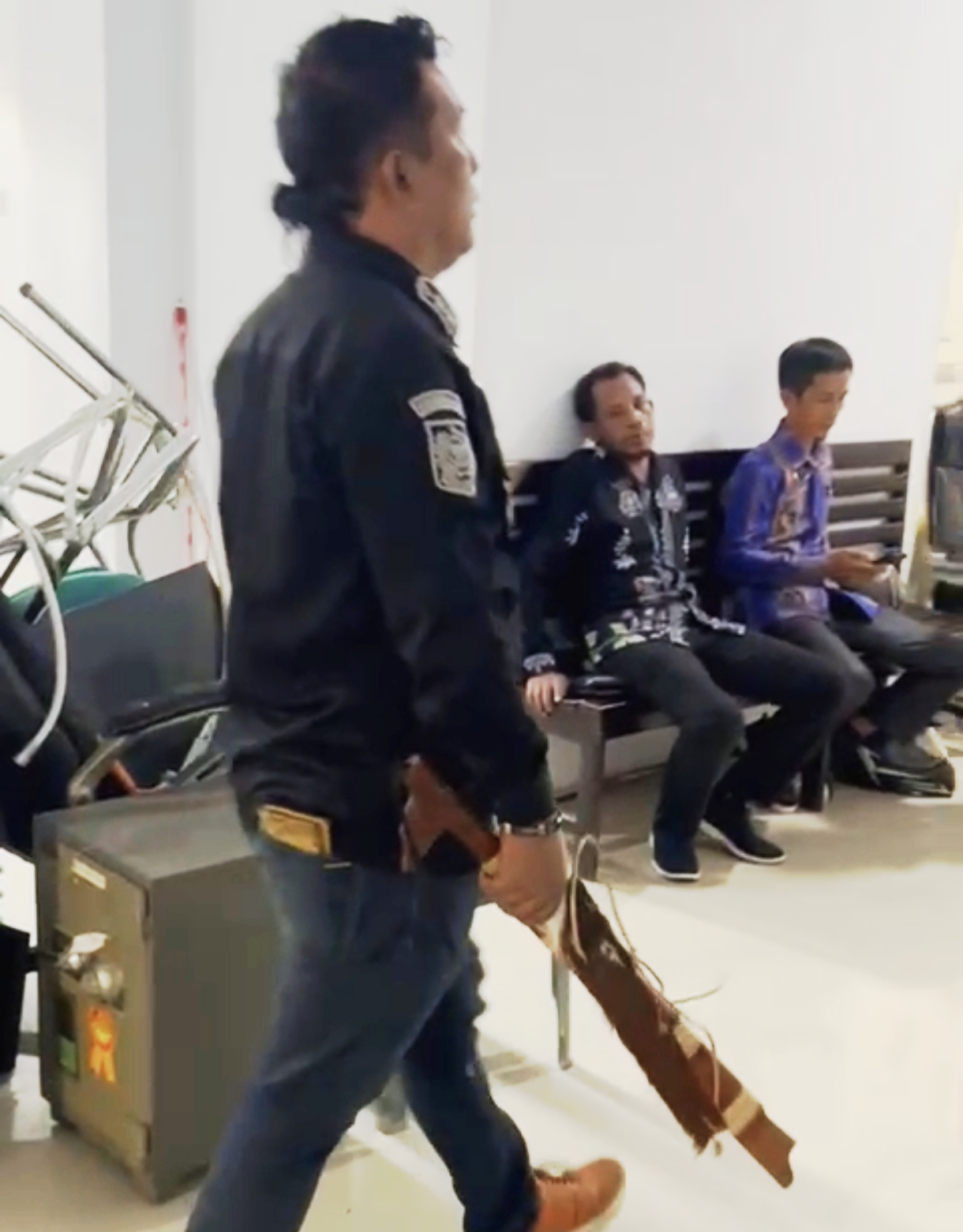 Ia mendatangi kantor BKD dengan membawa parang, mondar-mandir sambil mengeluarkan ancaman kepada Ketua Apdesi dan pihak BKD.
