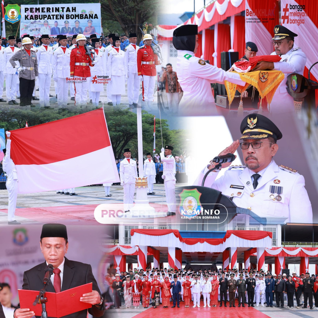 Bupati Bombana, Ir. H. Burhanuddin, M.Si, bertindak sebagai inspektur upacara didampingi Ketua TP PKK Kabupaten Bombana. Dalam amanatnya, ia menegaskan bahwa peringatan Hari Kemerdekaan harus menjadi momentum memperkuat semangat persatuan dan kerja bersama. “Hari ini kita bukan hanya mengenang sejarah, tetapi juga meneguhkan komitmen untuk membangun Bombana yang lebih baik di masa depan,” ujarnya.